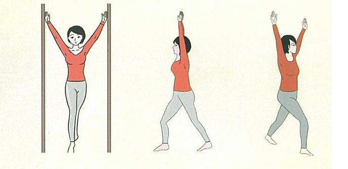 raise both arms to hold the doorframes on both sides; stretch your arms as much